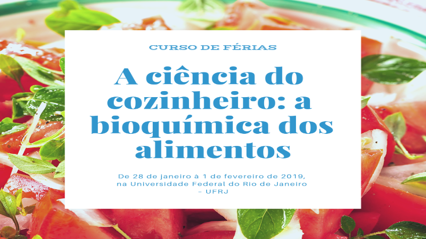 Acontece entre os dias 28 de janeiro e 1o de fevereiro de 2019, na Universidade Federal do Rio de Janeiro – UFRJ, o curso de férias “A ciência do cozinheiro: a bioquímica dos alimentos”. Sob a coordenação do professor Wagner Seixas da Silva, o curso será em turno integral, das 9 às 17 horas, no campus da universidade, na Ilha do Fundão.
