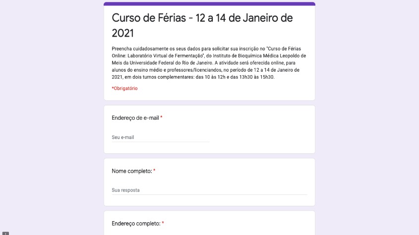 O curso é 𝐆𝐑𝐀𝐓𝐔𝐈𝐓𝐎 e tem como título “Curso de Férias Online: Laboratório Virtual de Fermentação”!!!