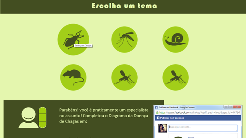 Jogo educativo para web, cujo objetivo é a montagem correta de um diagrama sobre um determinado tema, no menor tempo possível e com o menor número de erros. O usuário deverá responder corretamente perguntas de múltipla escolha para liberar as peças a serem encaixadas no diagrama. Diagramas apresenta um conteúdo relacionado às Doenças Negligenciadas de forma divertida e atrativa e possui integração com rede social (Facebook).